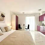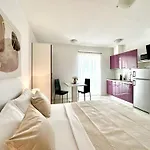 Tijdens een verblijf in City Pulse Rentals appartement zijn gasten vrij om een ingerichte kitchenette met een kookplaat en keukengerei voor self-catering te gebruiken. HNK - Izlaz bushalte is momenten van het gebouw.